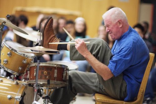 Han Bennink performing at the Fame School (La Guardia High, Manhattan)