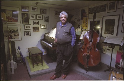 I photographed Ornette at his loft in midtown Manhattan on August 14, 2006. He said that the pitch of my Canon digital camera that took this photo was an A flat. I've since "played" the camera for other musicians who agree that the camera shutter's pitch is indeed an A flat.